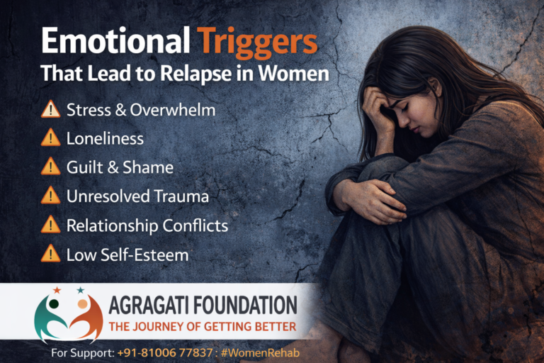 At Agragati Foundation Women Rehab in Kolkata, we understand that recovery is not just physical—it’s deeply emotional. Recognizing and managing these triggers is one of the most important steps toward long-term healing.